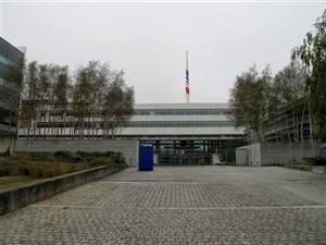 The head ofice of Air France is 130,000 square metres (1,400,000 sq ft) complex at Paris Charles de Gaulle Airport, was completed in December 1995. The French firm Groupement d'Etudes et de Méthodes d'Ordonnancement (GEMO) managed the project. The architect was Valode & Pistre and the design consultants were Sechaud-Boyssut and Trouvin. The project cost 137,000,000 euros (less than 700 million francs). The runways of the airport are visible from the building.
